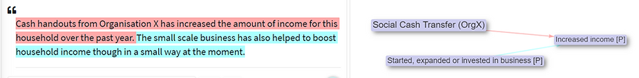- Developing a common grammar for causal coding, building on our existing work. For example, what to do when some claims are about an increase in income and others are about a decrease in income?